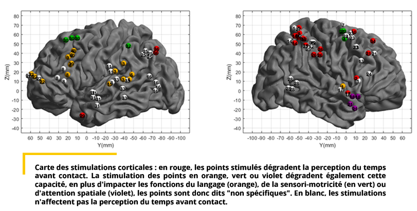 Il est intéressant de noter qu’une influence indirecte des stimulations sur l’estimation du TTC a été constatée sur les régions localisée dans les réseaux linguistiques, moteurs ou attentionnels.