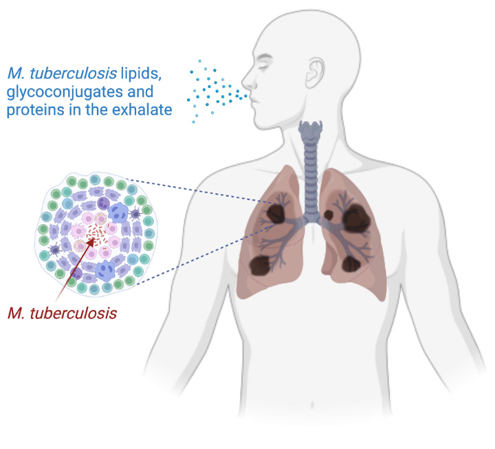 Les patients atteints de tuberculose exhalent de grandes quantités de molécules produites par Mycobacterium tuberculosis, notamment des lipides, des glycoconjugués et des protéines, qui peuvent être détectées pour diagnostiquer la maladie.