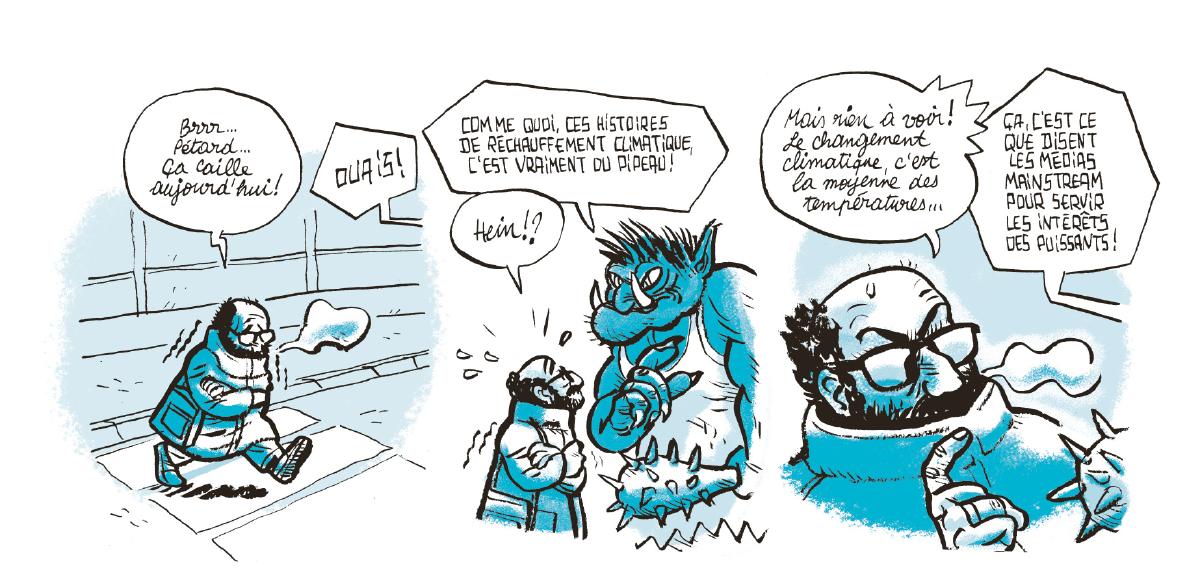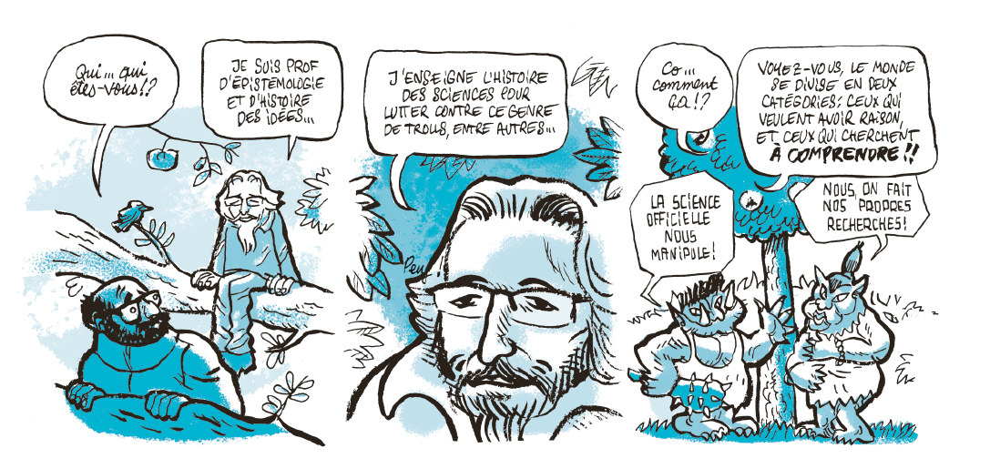 Au début du récit, les deux personnages narrateurs fuient des trolls. L'adage internet dit qu'il ne faut jamais les nourrir parce que c'est une perte de temps. Cette bande-dessinée, c'est une façon de répondre aux sceptiques de la science ?