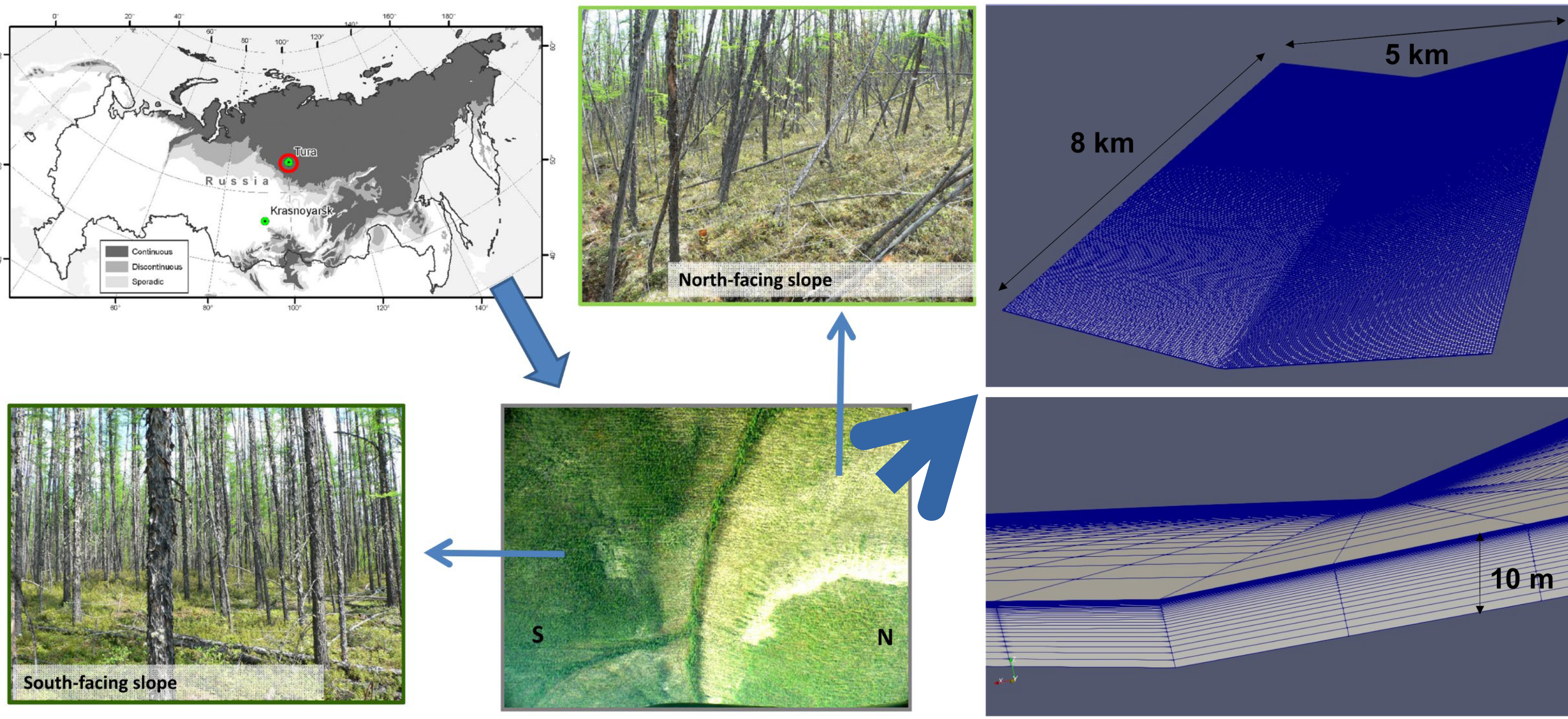 Ainsi, il est des zones de taïga où le cumul des pluies est de type désertique et où le mélèze, un arbre de la famille des pins, ne peut se développer que grâce à la présence du permafrost. Le modéliser devient donc nécessaire afin d’anticiper au mieux les impacts de son dégel. Néanmoins, ce type de modélisation est particulièrement difficile du fait des non-linéarités et des couplages caractérisant les processus physiques impliqués : les transferts d’eau et de chaleur en milieux poreux avec des périodes de gel et de dégel.