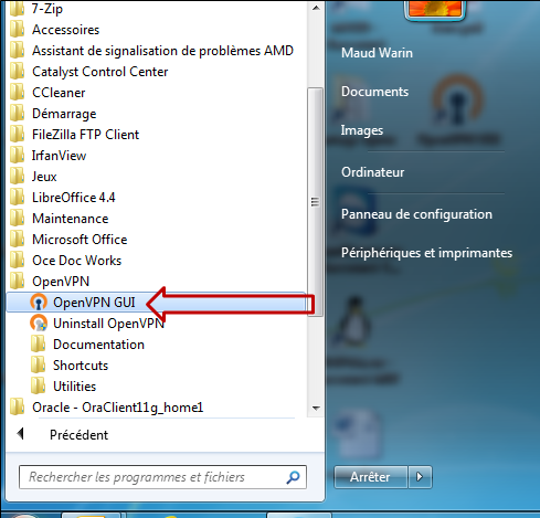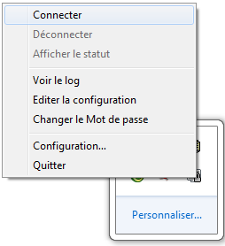 Faire un clic droit sur l'icône OpenVPN qui s'affiche maintenant dans la barre de notification et cliquer sur "Connecter"