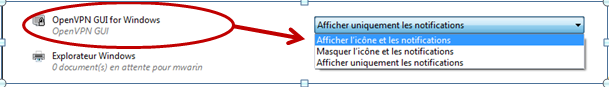 Pour la ligne "OpenVPN" sélectionner "Afficher l'icône et les notifications"