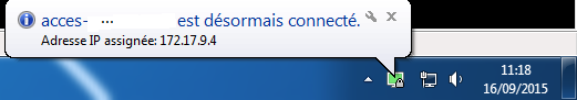 Une fois connecté, l'icône OpenVPN de la barre de notification devient verte