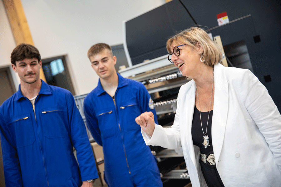 Ce lundi 12 juin, la Maison de la formation Jacqueline Auriol, dédiée aux formations en génie mécanique, productique et aéronautique du site toulousain, a été inaugurée en présence de Sylvie Retailleau, Ministre de l'Enseignement supérieur et de la Recherche. 2 000 étudiants de la Faculté sciences et ingénierie et de l'IUT Paul Sabatier de l'université Toulouse III-Paul Sabatier, de l'INSA et de l'ISAE-SUPAERO profitent déjà de cet espace unique. La qualité et la modernité des équipements proposés permettent d’être plus proche des préoccupations industrielles, en cohérence avec les besoins de l’industrie 4.0 (fabrication additive, réalité virtuelle, réalité augmentée, robotique…) mais également avec les innovations pédagogiques.