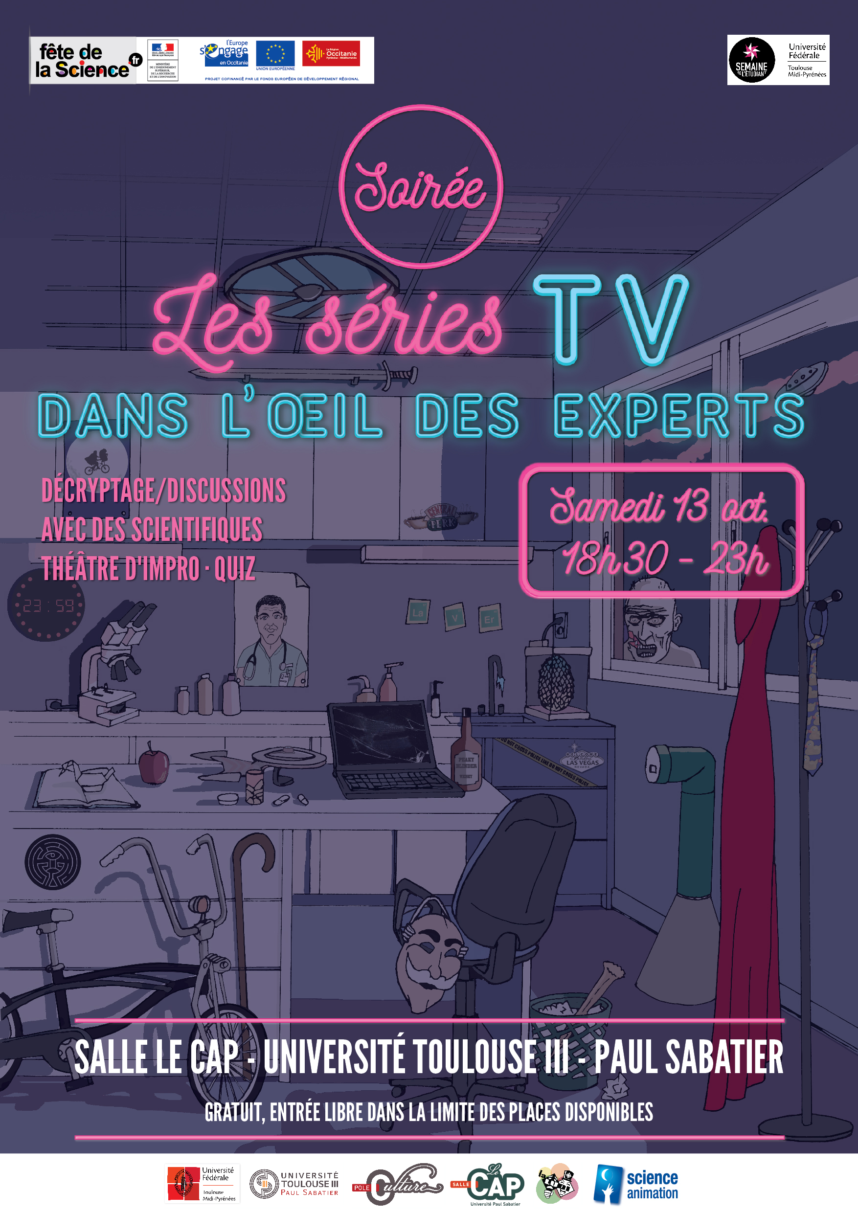 Soirée spectacle Venez démêler le vrai du faux ! Peut-on se fier aux séries policières ? Que pensent les roboticiens de Westworld ou Real Humans ? Les futurs que nous dépeignent les séries sont-ils possibles ?... À l’occasion de la Semaine de l’Étudiant et de la Fête de la science, venez profiter d’une soirée spéciale « Séries TV ». Au programme : des interventions d’experts qui viendront décrypter de nombreuses séries, des réinterprétations par les improvisateurs de la LUDI Toulouse et des quiz pour les sérievores. Plus d'infos