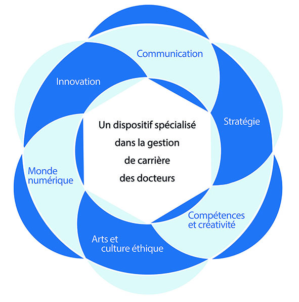 Ces trois activités fonctionnent en synergie et nous positionnent en permanence à l’interface entre les Docteurs et le milieu professionnel privé et public.