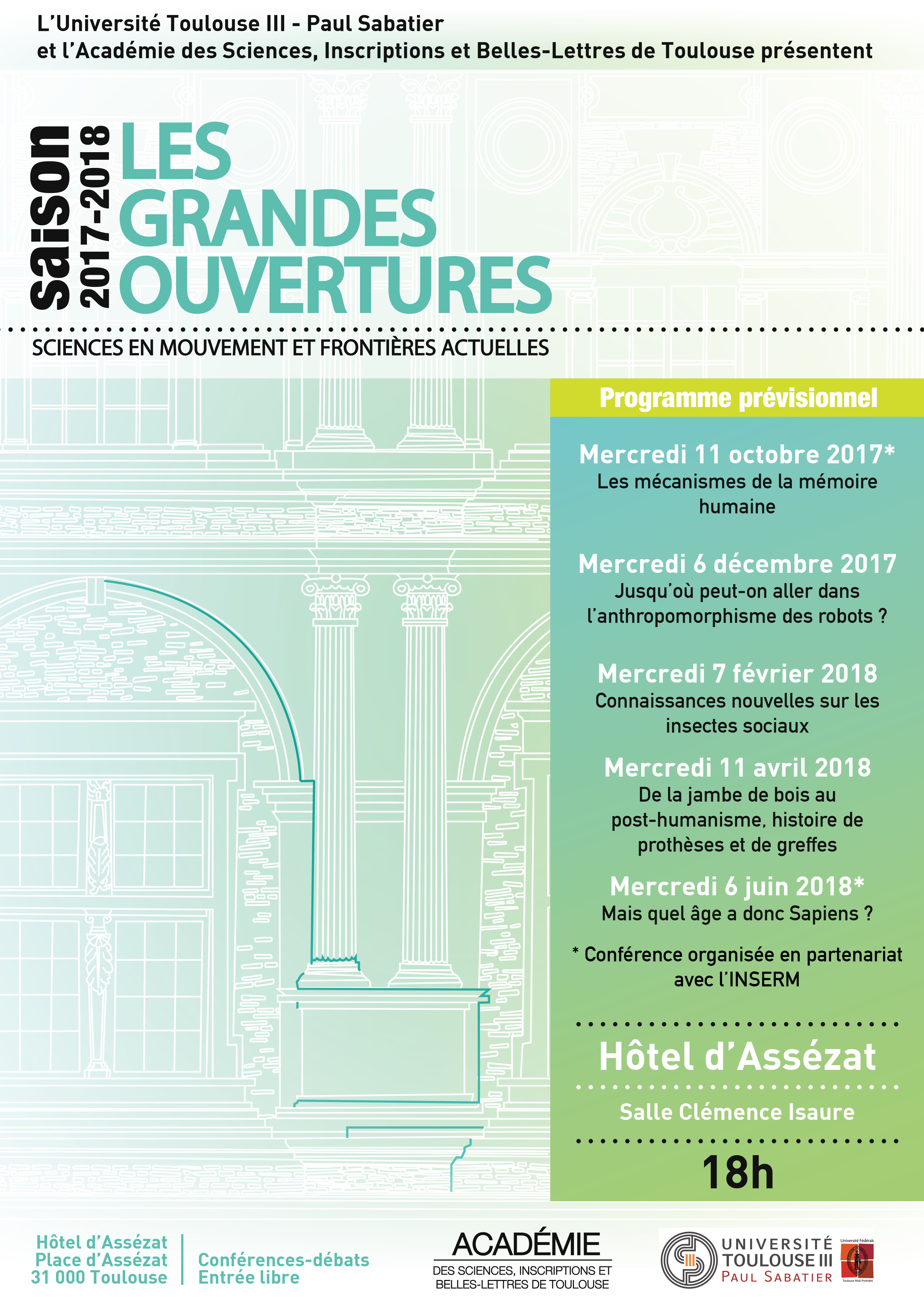 Elles sont co-organisées par la Direction de la communication, de la culture et des événements de l’université Toulouse III – Paul Sabatier et l’Académie des Sciences, des Inscriptions et Belles-Lettres de Toulouse.