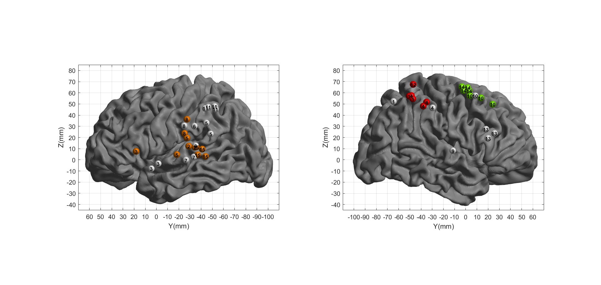 La deuxième étude, réalisée au cours de chirurgies éveillées, impliquait des patients devant estimer un TTC dans 2 conditions : avec et sans stimulations corticales appliquées à différents endroits du cerveau. L’application de ces stimulations électriques perturbant le fonctionnement normal de la zone impactée, permet de tester leur implication dans le traitement du TTC. Les tests en chirurgie éveillées permettent un accès direct au cerveau et une précision spatiale et temporelle inégalée de la stimulation électrique. De plus le rôle de la zone est ainsi estimé de manière causale, permettant de faire une relation directe entre zone et fonction, contrairement aux techniques d’imagerie traditionnelle comme l’IRM ou l’électroencéphalogramme, mettant à jour des relations de type corrélationnelle entre zone et fonction.