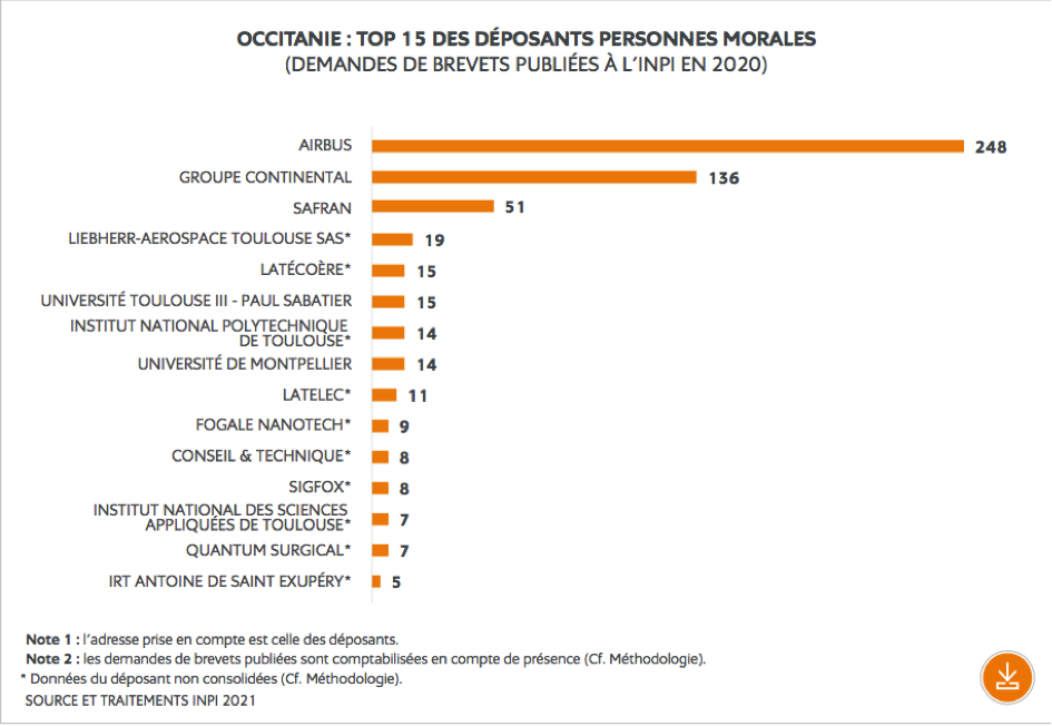 Au plan régional, 807 demandes de brevets ont été publiées à l’INPI en 2020 provenant de déposants français ayant une adresse en région Occitanie.