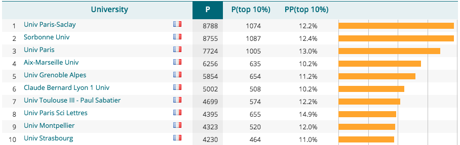 Ce classement réalisé par par le Centre d'études sur les sciences et les technologies (CWTS) de l'université de Leiden est basé sur les publications référencées dans la base de données Web of Science de Clarivate Analytics. Les universités retenues ont toutes au moins 800 publications scientifiques à leur actif sur la période 2016-2019.