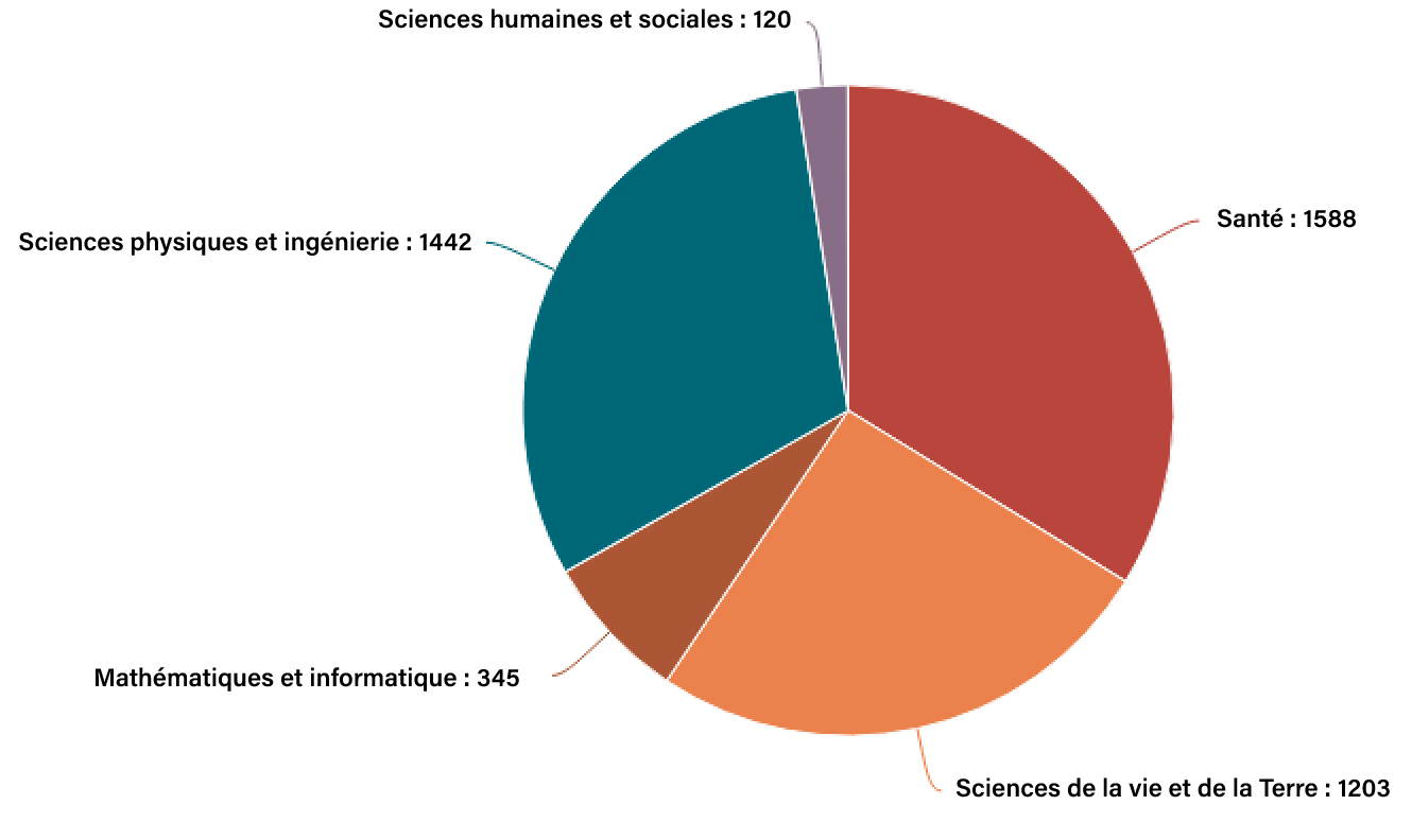 Sur l'ensemble de ces publications, 574 se situent dans le top 10 % des publications les plus citées dans le monde.